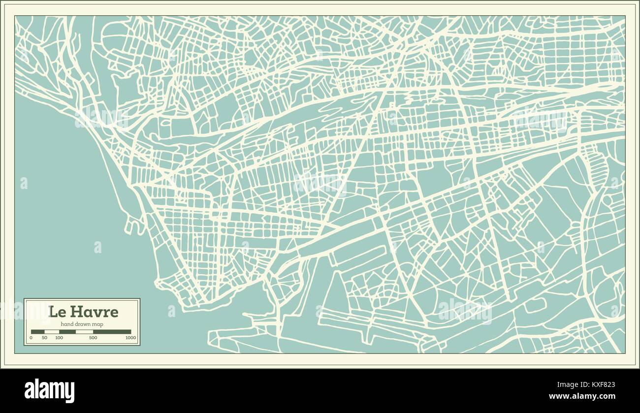 Le Havre Francia Mappa Della Citta In Stile Retro Mappa Di Contorno Illustrazione Vettoriale Immagine E Vettoriale Alamy